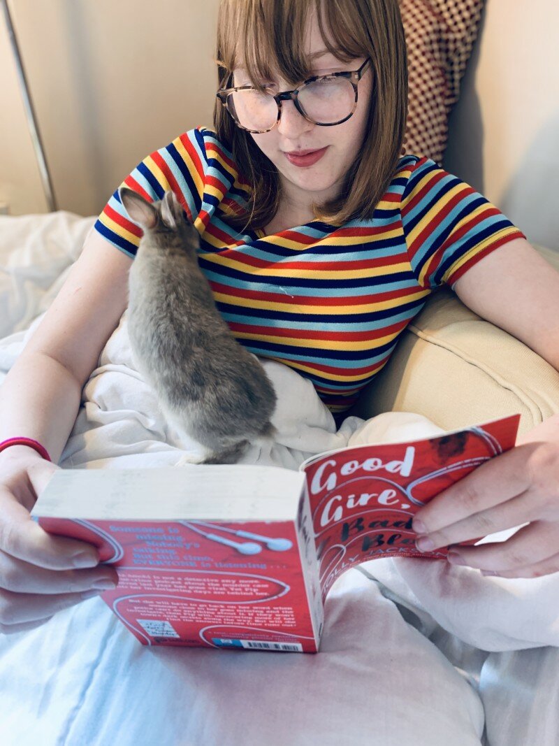 Reading with pets has helped make the process less rushed. We have taken to reading with an animal by our sides or in our lap. (I won’t bore you with the details but we’ve recently become a 4 pet household) This has upped the time spent on the sofa of late and so - with cups of tea and hot chocolate - we’ve given ourselves over to cuddling a creature whilst turning a page. Bliss.