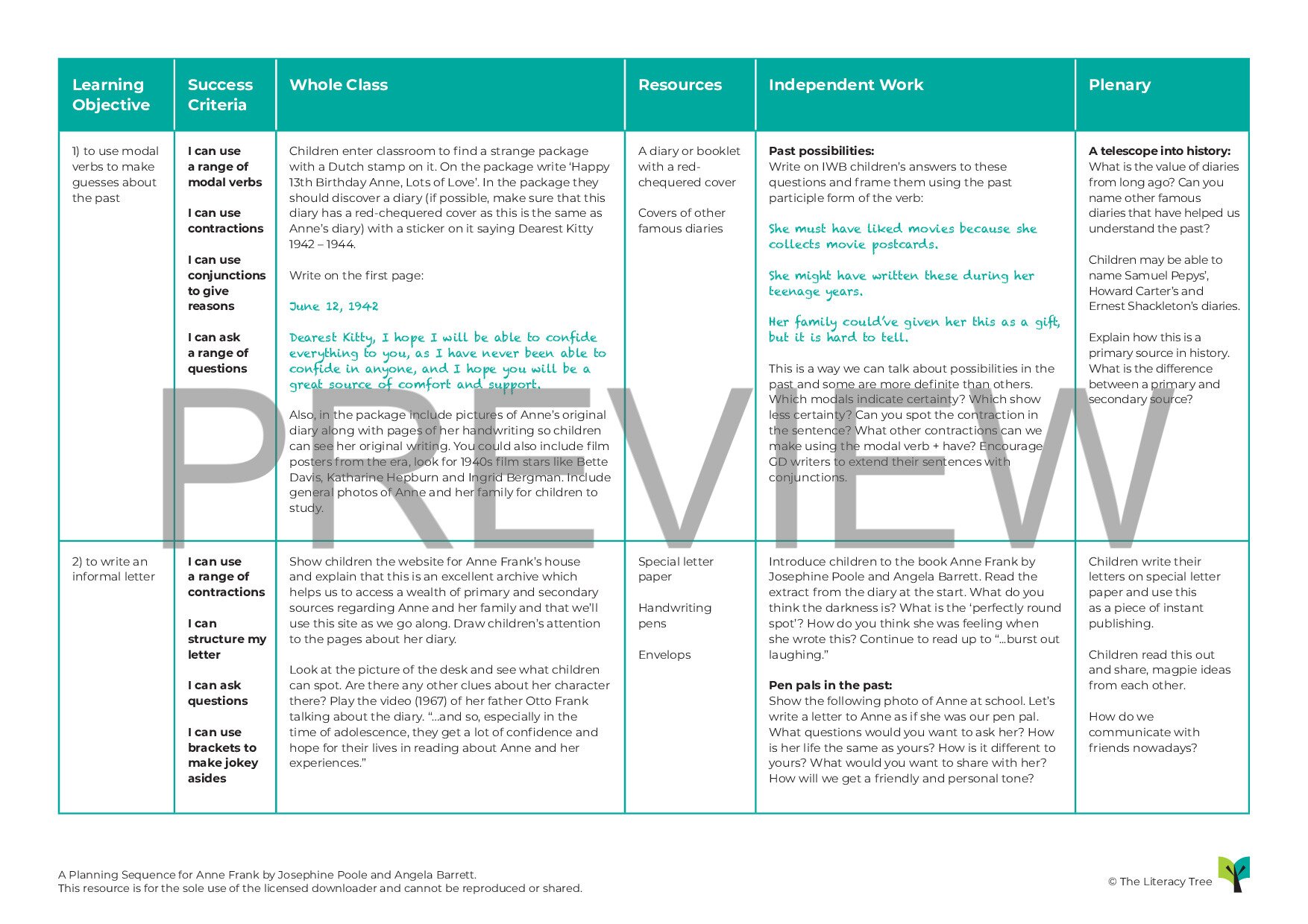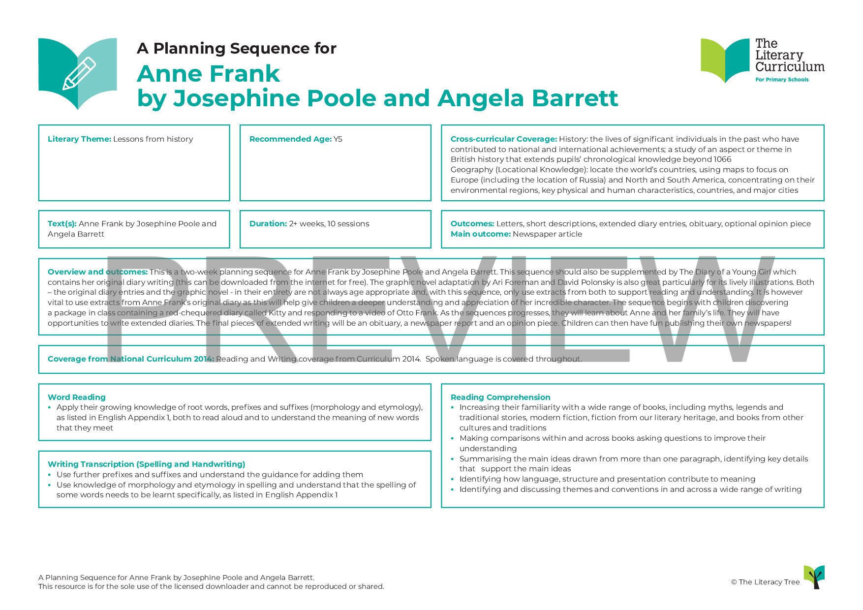 This is a two-week planning sequence for Anne Frank by Josephine Poole and Angela Barrett. This sequence should also be supplemented by The Diary of a Young Girl which contains her original diary writing (this can be downloaded from the internet for free). The graphic novel adaptation by Ari Foreman and David Polonsky is also great particularly for its lively illustrations. Both – the original diary entries and the graphic novel - in their entirety are not always age appropriate and, with this sequence, only use extracts from both to support reading and understanding. It is however vital to use extracts from Anne Frank’s original diary as this will help give children a deeper understanding and appreciation of her incredible character. The sequence begins with children discovering a package in class containing a red-chequered diary called Kitty and responding to a video of Otto Frank. As the sequences progresses, they will learn about Anne and her family’s life. They will have opportunities to write extended diaries. The final pieces of extended writing will be an obituary, a newspaper report and an opinion piece. Children can then have fun publishing their own newspapers!